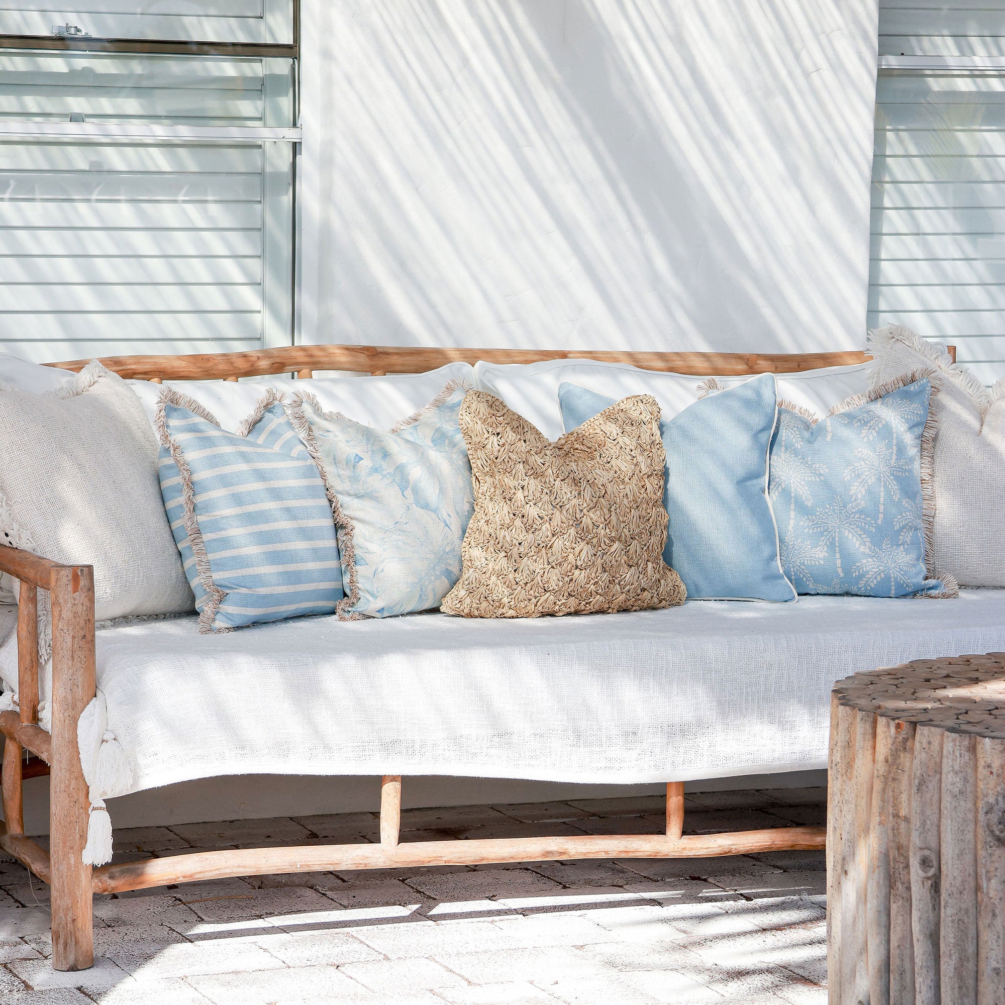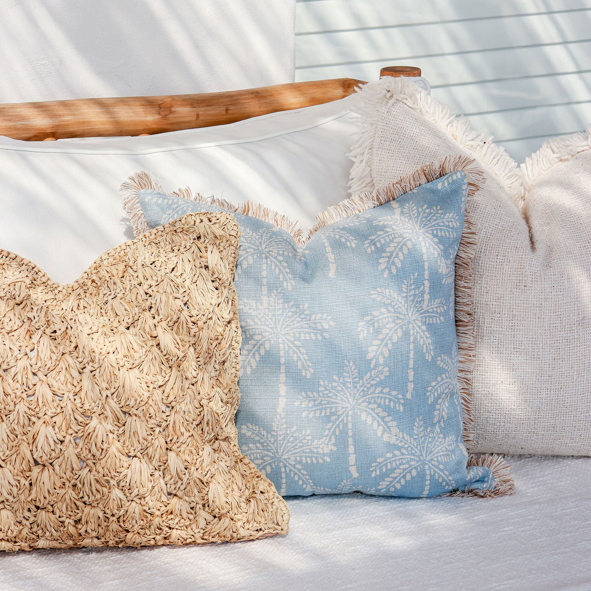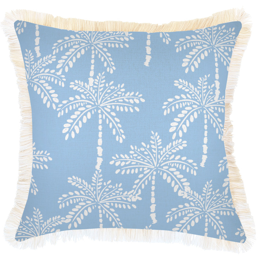 Cushion Cover-Coastal Fringe-Cabana Palms Pale Blue-45cm x 45cm