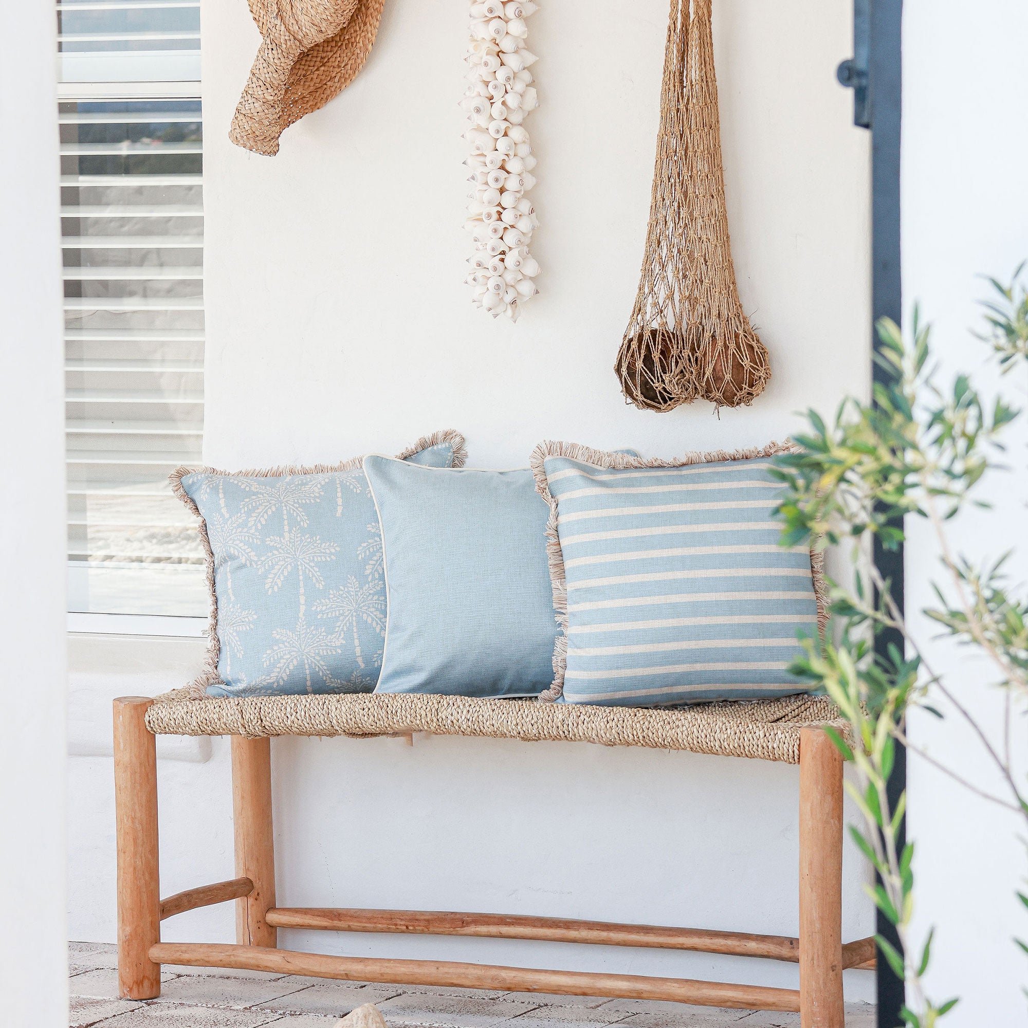 Cushion Cover-Coastal Fringe-Casa Palms Blue White-45cm x 45cm