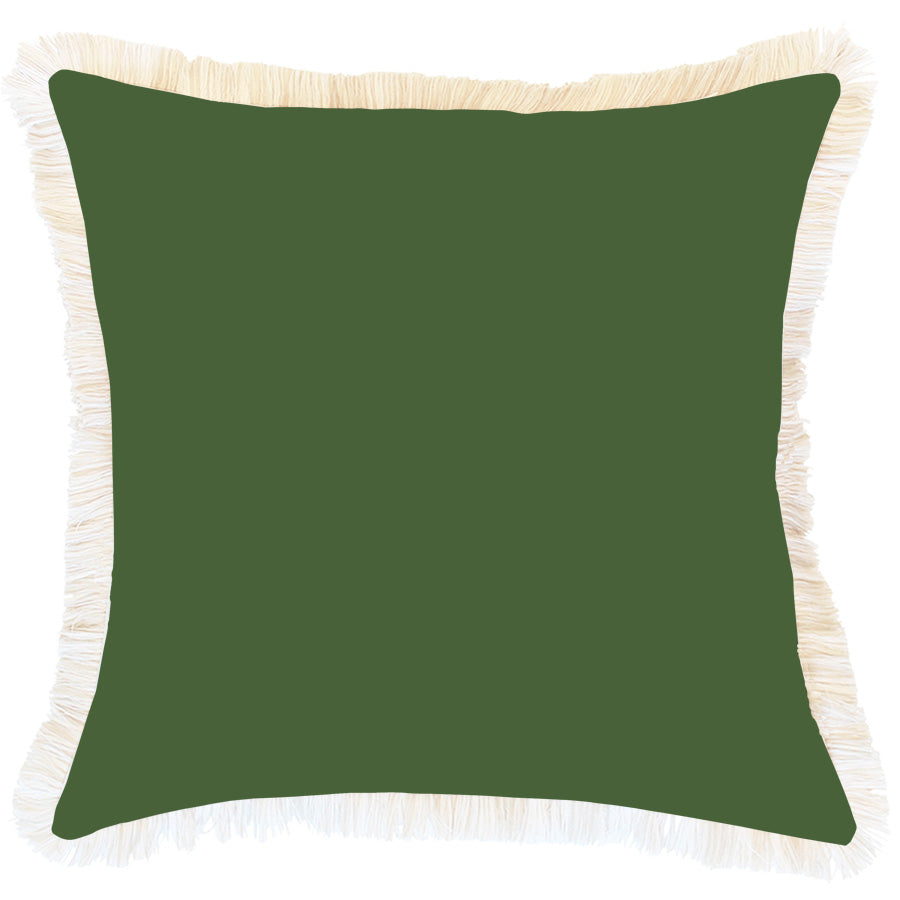 Cushion Cover-Coastal Fringe-Solid Dark Green White-45cm x 45cm